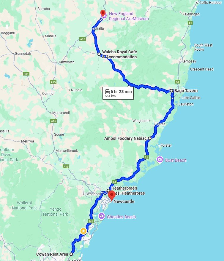 The run up to Armidale will be a 560km epic via M1/A1 Pacific Hwy and Oxley Hwy with stops at HeatherBrae, Wauchope and Walcha