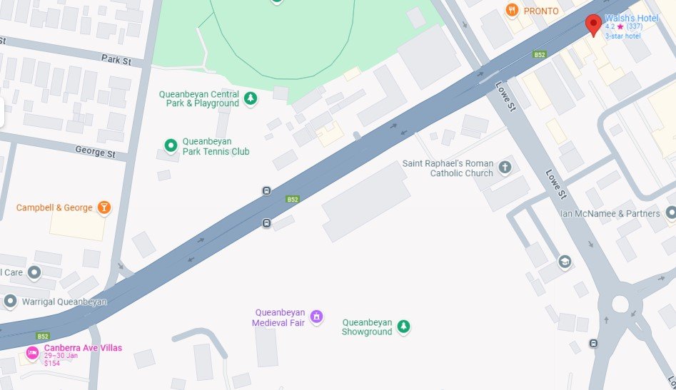 - Canberra Ave Villas 43 Canberra Avenue, 2620 Queanbeyan. 02 6297 1288 $135 on Booking.com for 2 people.